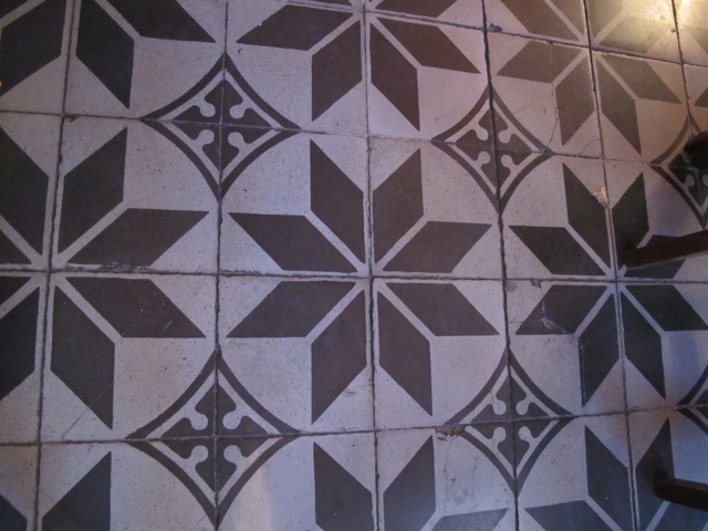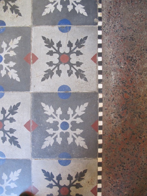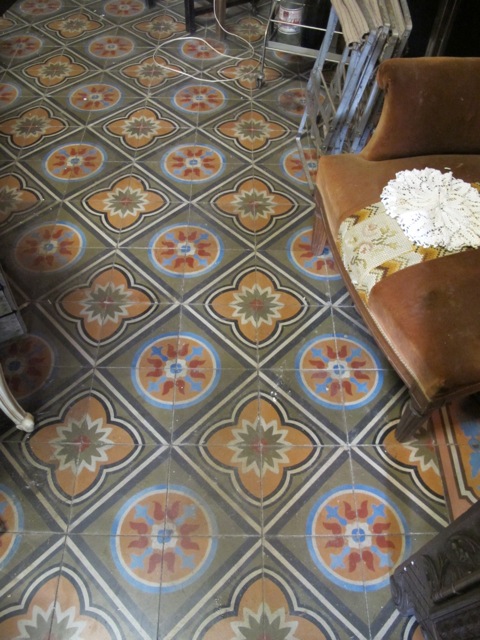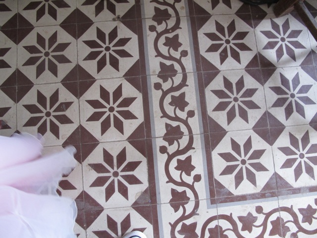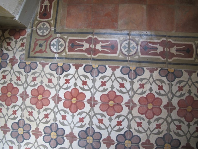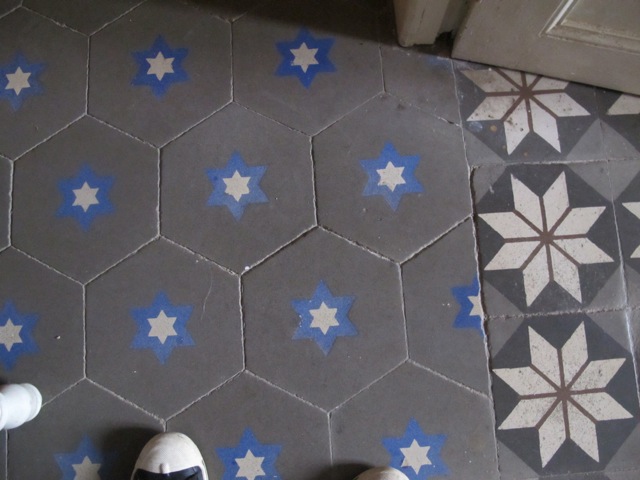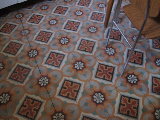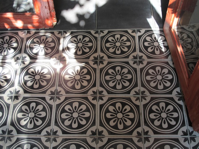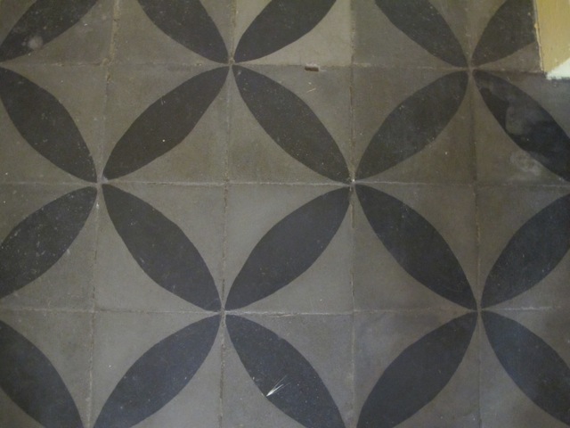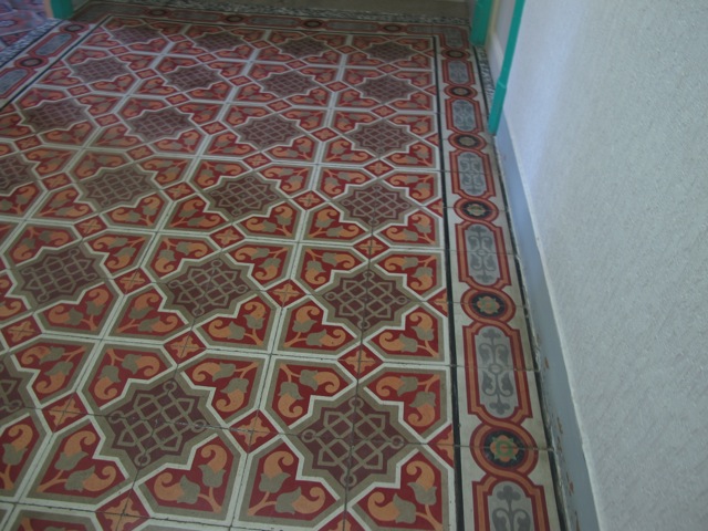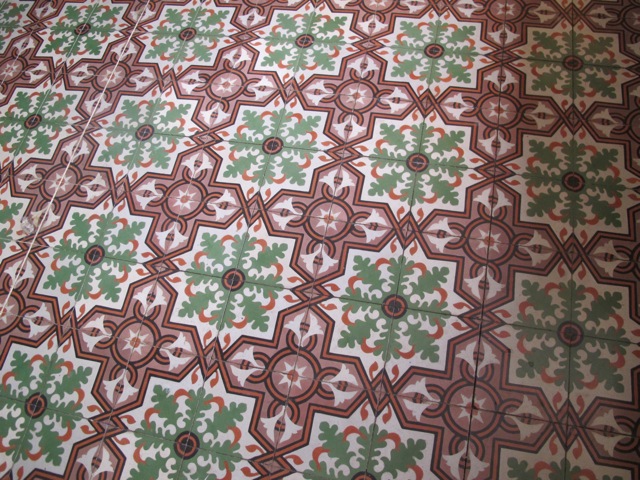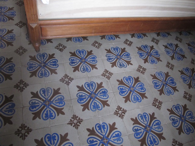 These highly decorative cement tiles (also known as hydraulic tiles), along with terracotta tiles, are an extremely common form of floor covering here and the colours can be magnificent.