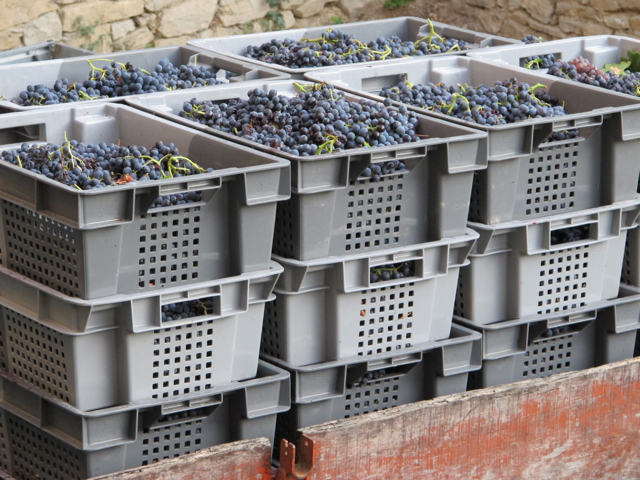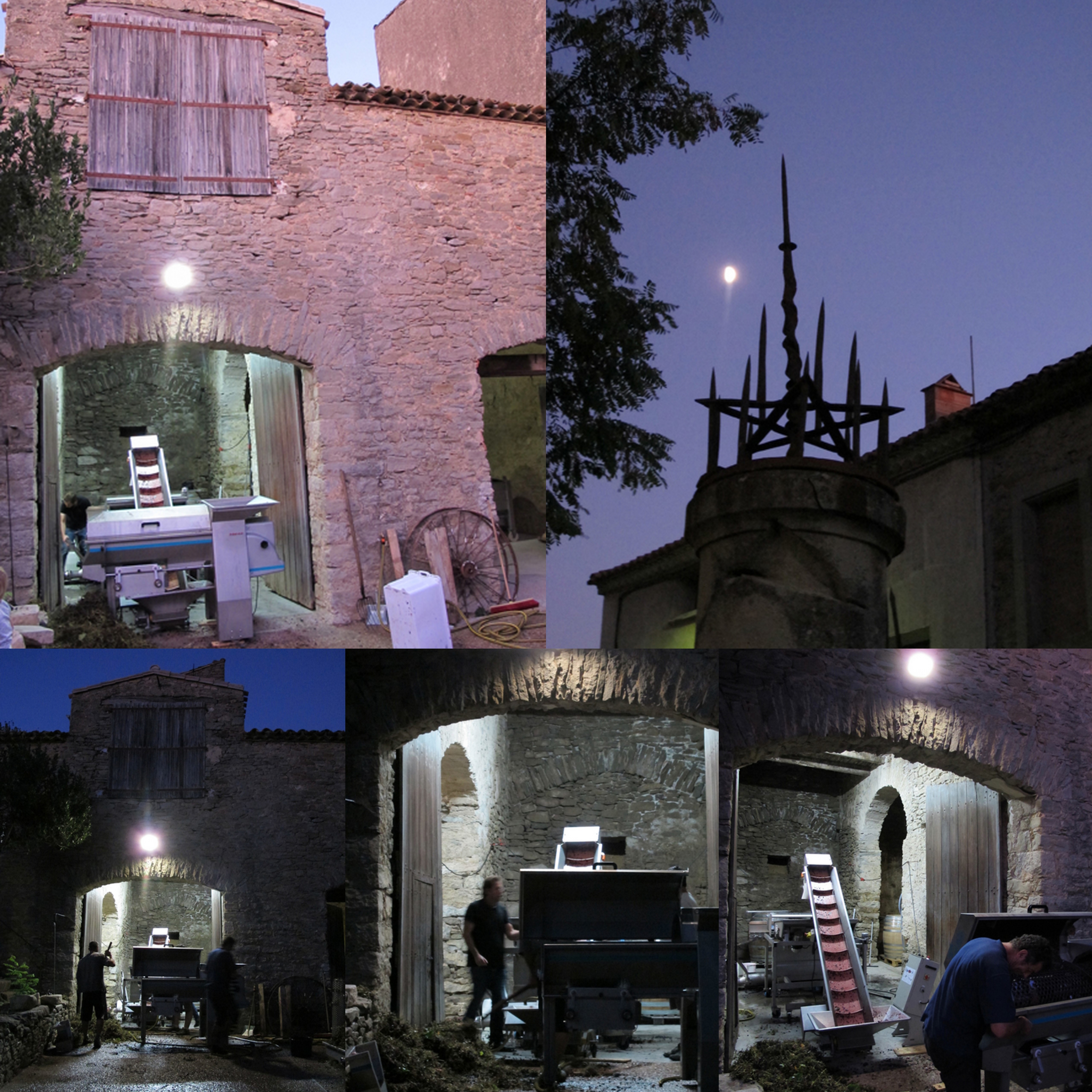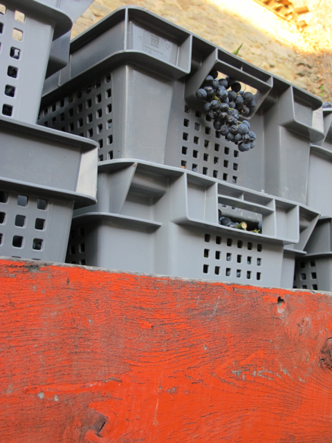 These photos show the last of the grapes from the harvest – the Grenache – coming in. We hung around for a couple of hours to see the action. It might sound nerdy, just hanging around and watching grapes go into a machine for processing, but really, it was quite exciting! Really! There’s something about the odour, the colours, the satisfaction on the faces of the grape growers seeing their fruit finally picked and about to perform their transformation.