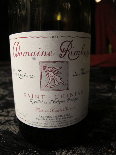 CHATEAU MARIS ‘CONTINUITE DE NATURE’ 2008: This is made from the local grape variety ‘Carignan’ and the wines made from this grape can be quite rustic. This is a great bottle, however (with the 2009 one of our favourites). It’s smooth, velevety and has a beautiful aroma.CHATEAU MARIS ‘CONTINUITE DE NATURE’ 2009: the same qualities as the earlier vintage, maybe a little better!BENJAMIN DARNAULT MINERVOIS LA LIVINERE 2008: This is a relatively complex red that needs to be left opened for a while before drinking. Very much enjoyed by Benji but for me there is an aroma that I can’t quite get used to when the wine is still relatively young – this aroma is from the fact that it was carbonically macerated. Not for me, personally (sorry Benji!) but a lot of people enjoy this element.AOP ST CHINIAN 2009: This has to be one of my favourite reds in the Benji’s Naked range. A big red that does well with opening well in advance, but once aired the nose is beautiful, complex and a good body. I really love this area for wine. A good red for meat dishes, but I must say it’s always great to try a red you love all on its own first.BENJAMIN DARNAULT CELTIS AUSTRALIS 2009: This is a relatively new wine to Benji’s range, and is a blend of syrah, grenache, mourvedre and carignan. To quote Benji – “The name is Latin for hackberry, a local tree which grows very well in the region. I love the tree and the name is ringing with my link to Australia”.BENJAMIN DARNAULT AOP FAUGERES 2008: Now this one is a delicious bottle! It’s a syrah that’s been aged in barrel for 18 months and relatively young in the bottle so neds a good time being left opened before drinking. Great robust red that matched our duck breasts ‘magret de canard’ beautifully.Chateau Maris ‘Continuite de Nature’ 2008: yes, you’ve seen this one before. One of our absolute faves at the moment and tasting well everytime.Chateau Villerambert Julien 2004 Minervois: a very old family winery dating back a few generations, in Caunes-Minervois, one of the most picturesque villages around here, known also very well for its ‘Caunes marble’ – a rich, deep pink/ochre colour streaked with white. I think this is a syrah/ grenache blend and was enjoyable but the wood a little too strong.Benjamin Darnault AOP Languedoc 2010: a wine from the Naked range. A delicious ‘big’ organic red from St Chinian, one of my favourite appellations in the Languedoc.Chateau Maris ‘Las Combes’ 2009: one of Benji’s again… this actually the ‘Old Vine Grenache’ in a different guise… a gorgeously fragrant grenache, with beautiful, soft tannins on the mouth.DOMAINE LA ROUVIOLE, Coup de Theatre 2009. This delightful wine is from Siran, right on our doorstep and so easy to drink. A 100% Cinsault. One of the faves this Summer.DOMAINE DU VIALA, 2008. Lovely, juicy red made by Regis and Thalia in Paraza. Love the wine and love the labelthe brand new range of ‘Boulevard Napoleon’. A collaboration between Benji and some restaurateur friends in the UK. Soooo good! Tasting notes on each bottle to follow…Domaine Rimbert, AOP St Chinian, ‘Les Travers de Marceau’. Deeelish red from one of my favourite areas around here