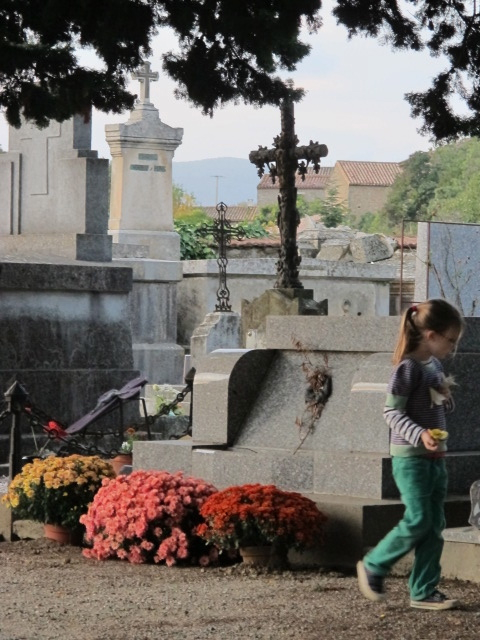 I’ll always remember the first year I arrived in France, walking through the cemetery of Lagrasse, by chance, just after the 1st of November. I was in awe, it was the most beautiful spectacle of colours and flowers. ‘They really look after their dead loved ones here,’ I said to Benjamin. He laughed and explained the tradtion of ‘La Toussaint’ to me. From then on I’ve always made sure to have a wander inside the cemetries at this time of year to take in the beauty and have a think. I don’t do it often, but going in and having a quiet walk around, reading the various names and looking at the faces of those few whose families have left a photograph gives me time to reflect and be grateful for being around. Corny, I know – but it puts things back into perspective and I feel even more happy to be around walking the earth instead of under it.