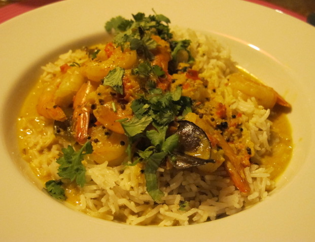 Add crushed garlic, mushrooms and bacon and fry till takes colour, stirring well.